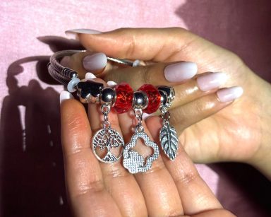 Crimson Garden Charm Bracelet – Red Crystal Beads with Tree of Life & Nature Motifs