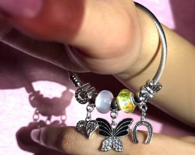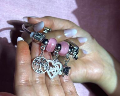 Blush Bloom Charm Bracelet – Pink Glass Beads with Love & Life Motifs