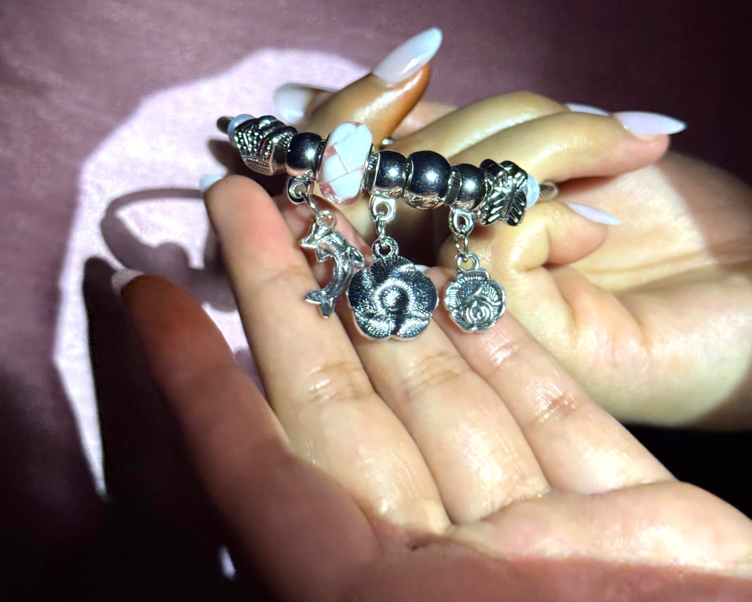 Add a touch of delicate beauty and playful charm to your accessory collection with this Luxury Silver Charm Bracelet with Pink Bead from the Whimsical Ocean Garden Collection. This graceful piece fuses nature-inspired motifs with soft, feminine hues — perfect for those who adore subtle elegance with symbolic depth.