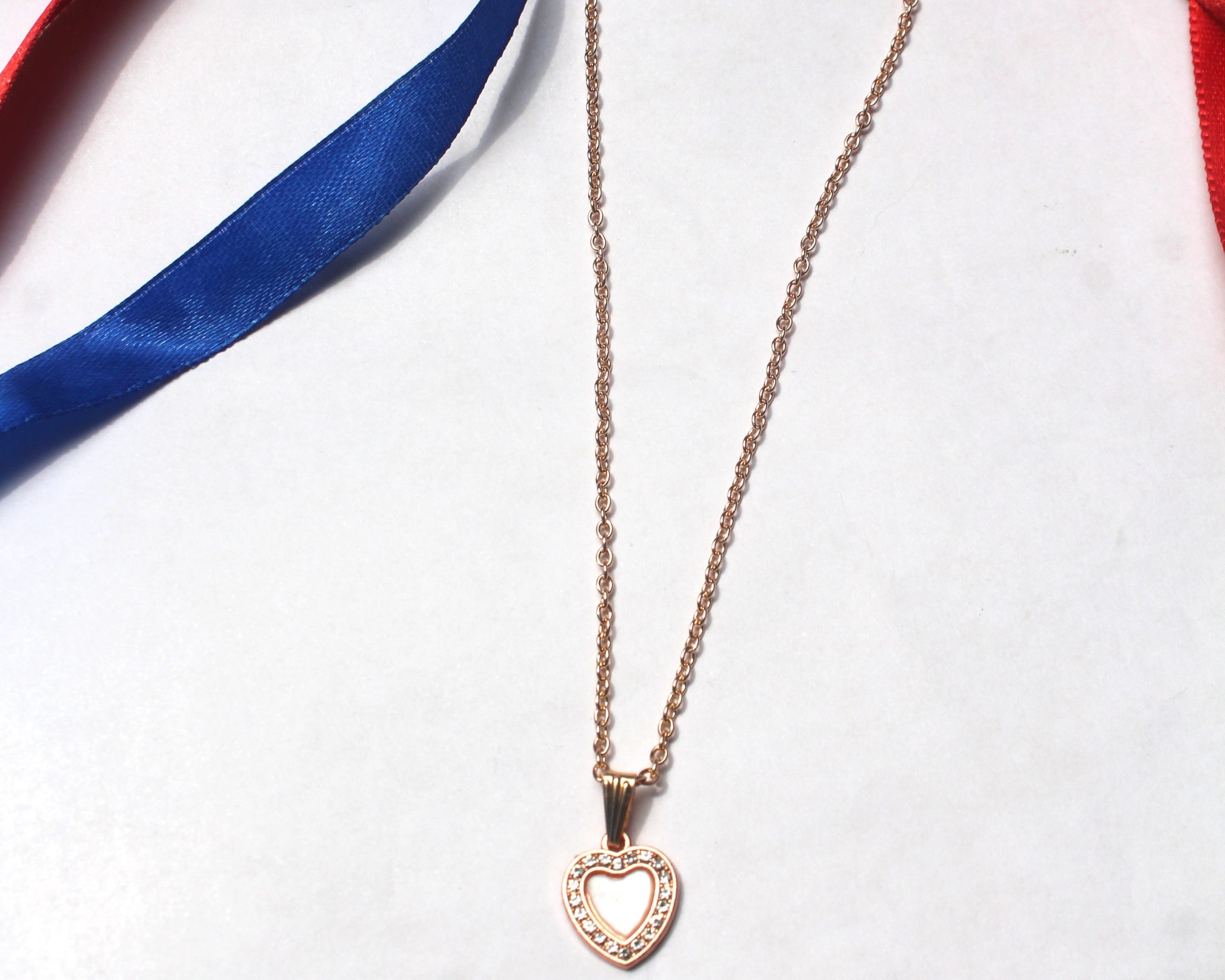 Rose Gold Coloured Women Artificial Heart Pendant with Chain